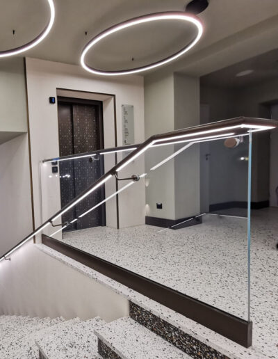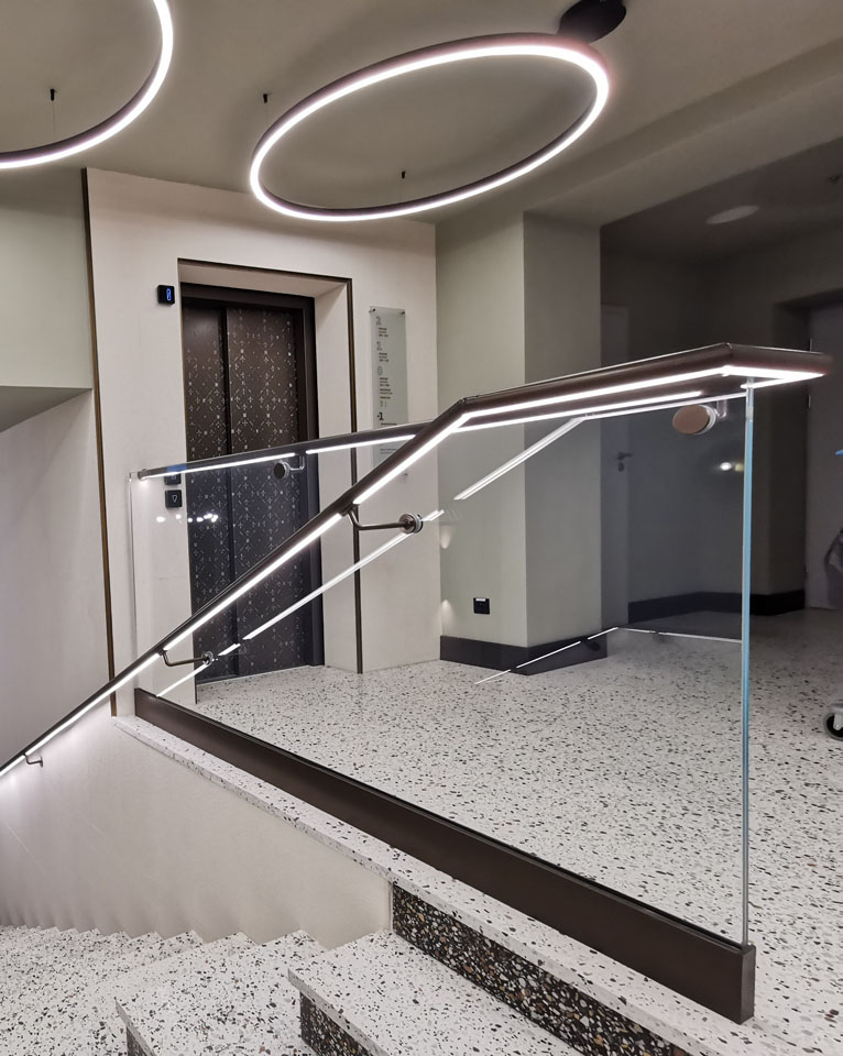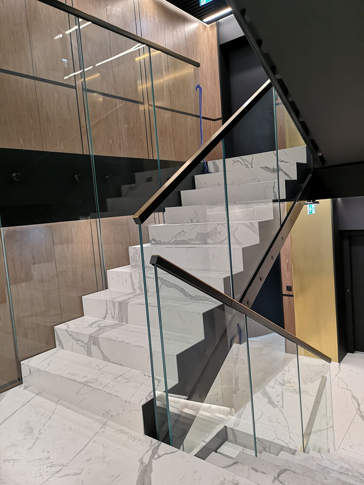 Il vetro prodotto nella nostra azienda è applicabile non solo negli interni residenziali, ma anche negli spazi pubblici. A causa dei loro valori estetici e pratici, gli elementi in vetro sono spesso collocati nei progetti di uffici, centri commerciali, uffici, ecc.