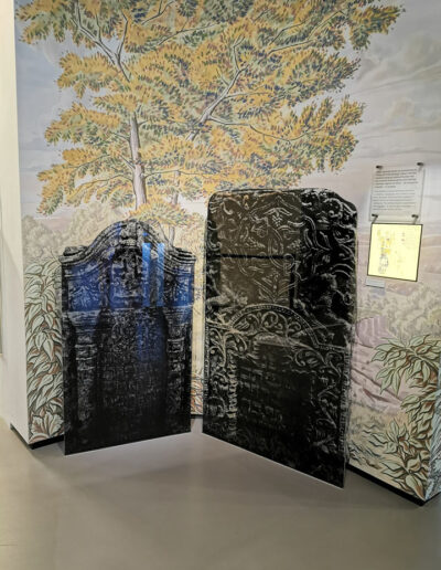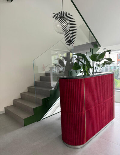 Recepcja – szkło Madagascar laminowane ze szkłem lakierowanym.